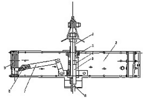 防墜器箱式結(jié)構(gòu)采用###加厚鋼板焊接或螺紋聯(lián)接而成的,箱體的中心部位是力距調(diào)節(jié)裝置和變節(jié)距彈簧儲(chǔ)能裝置,它通過(guò)杠桿與兩端的捕繩裝置相連接,圖中顯示的是靜態(tài)的相互位置關(guān)系。