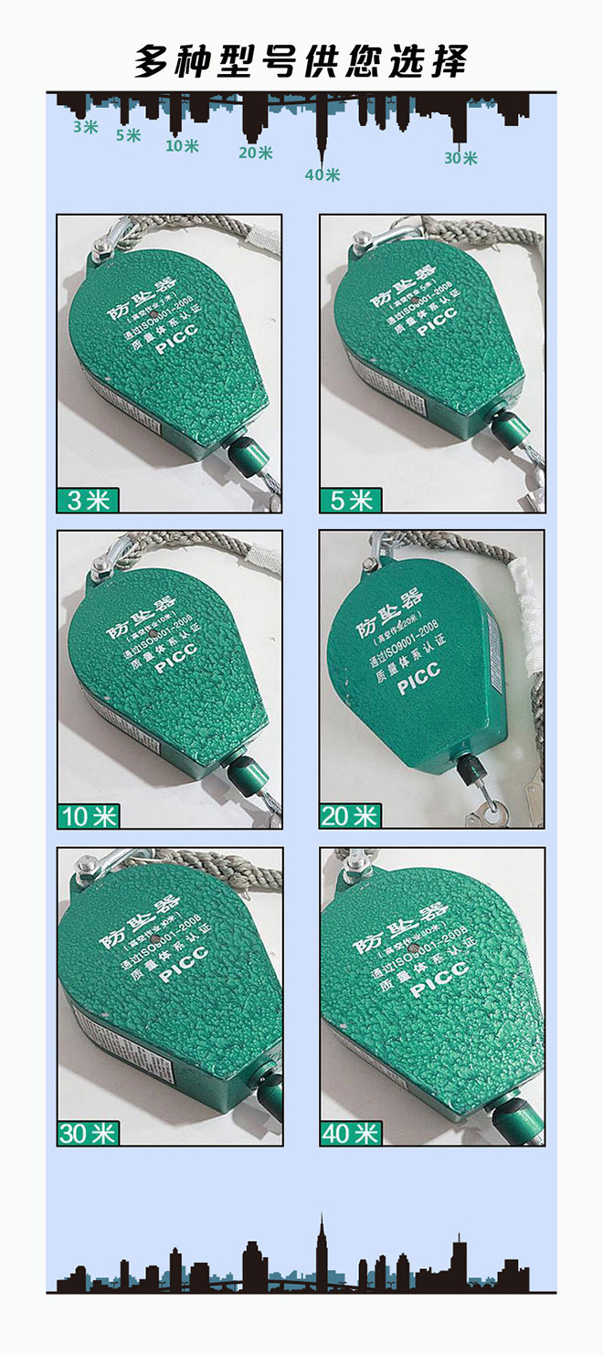 查看詳情工業(yè)防墜器型號(hào)有500KG,800kg,1000KG;長(zhǎng)度可以根據(jù)客戶(hù)要求定做,有5米,10米,15米。這種工業(yè)防墜器承載量比較大,因此,客戶(hù)頂多需要的長(zhǎng)度也是要15米的,工業(yè)防墜器鋼絲繩采用***航空鋼絲繩,安全系數(shù)是普通鋼絲繩的5倍。工業(yè)防墜器使用壽命長(zhǎng),安全系數(shù)高。工業(yè)防墜器是一種新型防墜器,
