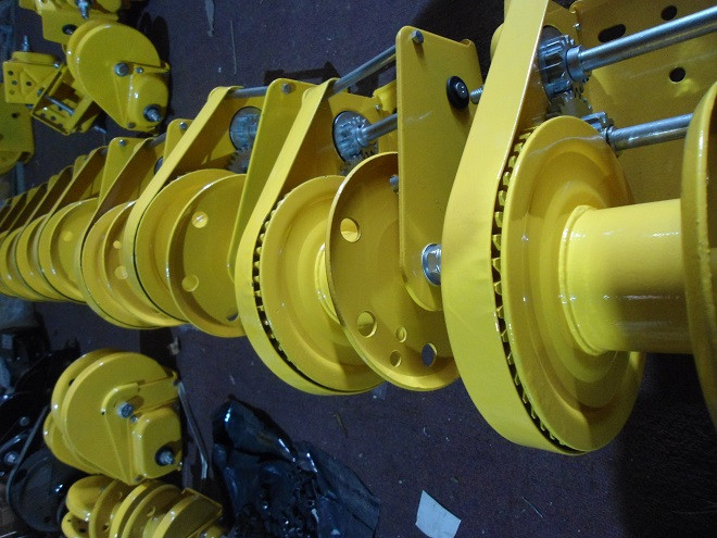查看詳情咨詢電話:13933276606?河北東圣吊索具長垣某客戶在生產(chǎn)鋼絲繩起重設(shè)備時(shí),使用了東圣自鎖手動(dòng)絞盤作為機(jī)械零部件在各工位及倉庫內(nèi)出入擺放時(shí)的輕小型起重設(shè)備。?客戶將手動(dòng)絞盤安裝在可移動(dòng)式小吊機(jī)的立柱頂部,絞盤鋼絲繩及吊鉤穿過吊臂頂部定滑輪懸垂于吊臂下方。吊臂承重量為200kg。小吊機(jī)設(shè)有行走輪