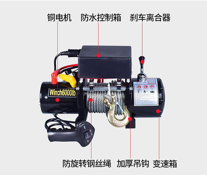 查看詳情產(chǎn)品優(yōu)勢(shì): 鋼齒輪,使用壽命長:齒輪經(jīng)高溫?zé)崽幚恚岣吡四湍バ院驼w性;銅電機(jī),動(dòng)力強(qiáng)勁:銅芯電機(jī),功率大,性能穩(wěn)定,功率大,效率高;防旋轉(zhuǎn)鋼絲繩承重力強(qiáng):耐磨抗壓,拉力大,結(jié)實(shí)耐用,安全系數(shù)高,維護(hù)簡易。電動(dòng)絞盤零部件細(xì)節(jié)展示 規(guī)格說明: 本電動(dòng)絞盤系列產(chǎn)品主要用于汽