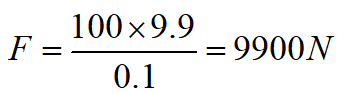 假設(shè)一個(gè)質(zhì)量為 100 kg 的物體從 5 米高處落下,停止時(shí)間為 0.1 秒: